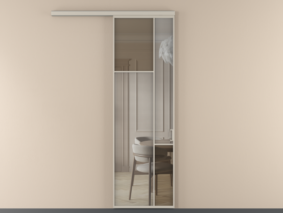 Во всех алюминиевых перегородках, независимо от типа установки, используется компланарный раздвижной механизм, благодаря которому декоративная крышка и полотно находятся в одной плоскости.