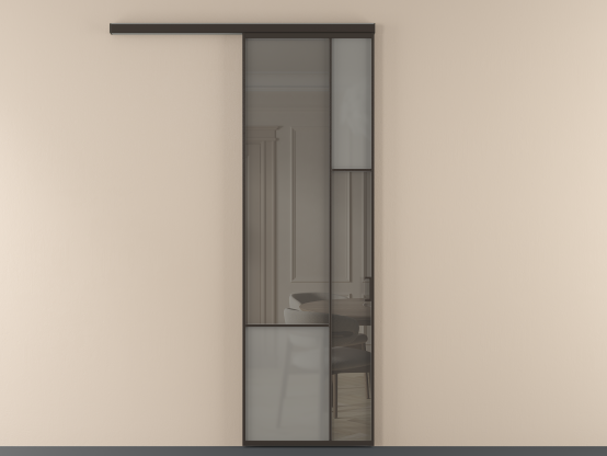 Во всех алюминиевых перегородках, независимо от типа установки, используется компланарный раздвижной механизм, благодаря которому декоративная крышка и полотно находятся в одной плоскости.