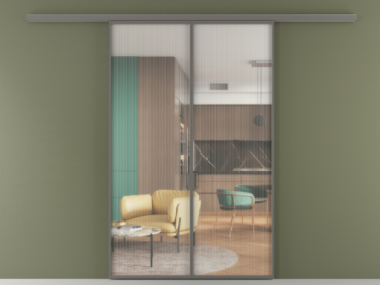 Во всех алюминиевых перегородках, независимо от типа установки, используется компланарный раздвижной механизм, благодаря которому декоративная крышка и полотно находятся в одной плоскости.