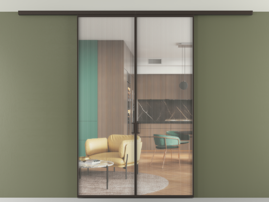 Во всех алюминиевых перегородках, независимо от типа установки, используется компланарный раздвижной механизм, благодаря которому декоративная крышка и полотно находятся в одной плоскости.