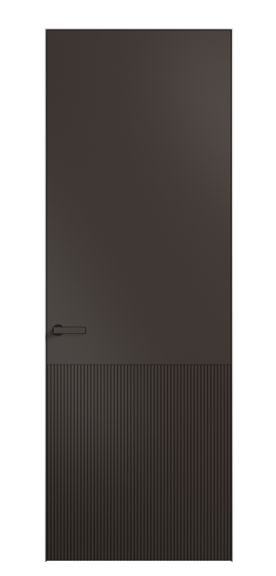 Это полотна с рельефной фрезеровкой. Этот прием делает интерьер объемным, тактильным, вносит интересную текстуру и создает современный образ. Волнистый рельеф может быть выполнен по ламелям из массива дуба в древесных матовых отделках, либо исполнен по натуральному и экологически безопасному материалу — ХДФ, покрытому гладкой эмалью актуальных оттенков.