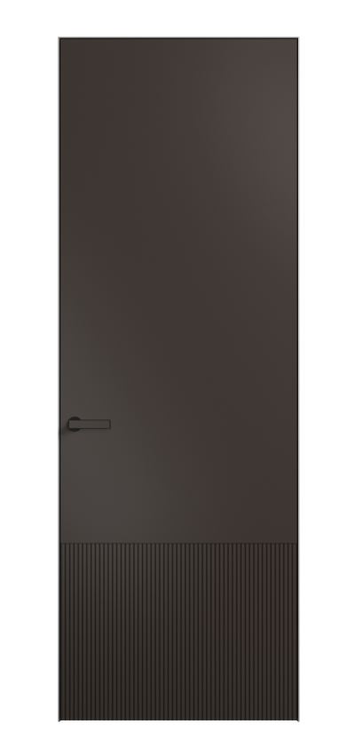 Это полотна с рельефной фрезеровкой. Этот прием делает интерьер объемным, тактильным, вносит интересную текстуру и создает современный образ. Волнистый рельеф может быть выполнен по ламелям из массива дуба в древесных матовых отделках, либо исполнен по натуральному и экологически безопасному материалу — ХДФ, покрытому гладкой эмалью актуальных оттенков.