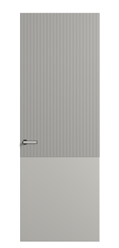 Это полотна с рельефной фрезеровкой. Этот прием делает интерьер объемным, тактильным, вносит интересную текстуру и создает современный образ. Волнистый рельеф может быть выполнен по ламелям из массива дуба в древесных матовых отделках, либо исполнен по натуральному и экологически безопасному материалу — ХДФ, покрытому гладкой эмалью актуальных оттенков.