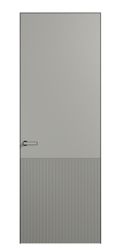 Это полотна с рельефной фрезеровкой. Этот прием делает интерьер объемным, тактильным, вносит интересную текстуру и создает современный образ. Волнистый рельеф может быть выполнен по ламелям из массива дуба в древесных матовых отделках, либо исполнен по натуральному и экологически безопасному материалу — ХДФ, покрытому гладкой эмалью актуальных оттенков.