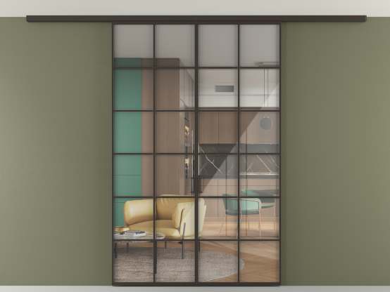 Во всех алюминиевых перегородках, независимо от типа установки, используется компланарный раздвижной механизм, благодаря которому декоративная крышка и полотно находятся в одной плоскости.