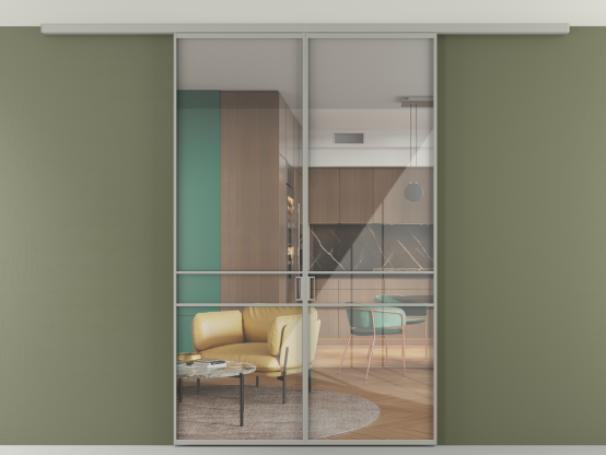 Во всех алюминиевых перегородках, независимо от типа установки, используется компланарный раздвижной механизм, благодаря которому декоративная крышка и полотно находятся в одной плоскости.