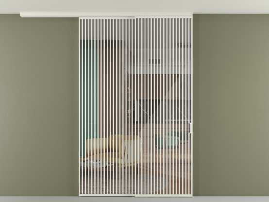 Во всех алюминиевых перегородках, независимо от типа установки, используется компланарный раздвижной механизм, благодаря которому декоративная крышка и полотно находятся в одной плоскости.