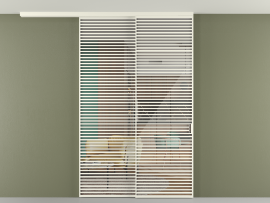Во всех алюминиевых перегородках, независимо от типа установки, используется компланарный раздвижной механизм, благодаря которому декоративная крышка и полотно находятся в одной плоскости.