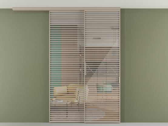 Во всех алюминиевых перегородках, независимо от типа установки, используется компланарный раздвижной механизм, благодаря которому декоративная крышка и полотно находятся в одной плоскости.