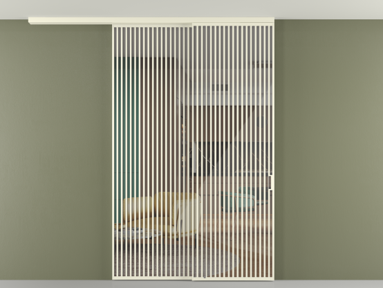 Дополнительно на раздвижную двустворчатую перегородку вдоль стены и четырёхстворчатую перегородку внутри проёма с двумя неподвижным полотнами можно установить механизм синхронного открывания — при открывании одной створки, вторая открывается автоматически.