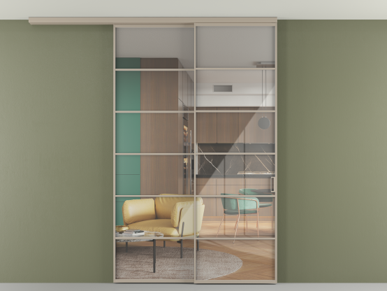 Во всех алюминиевых перегородках, независимо от типа установки, используется компланарный раздвижной механизм, благодаря которому декоративная крышка и полотно находятся в одной плоскости.