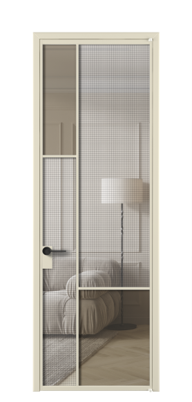 АЛПЛ041.13 Алюминий бежево-серый Декоративное стекло с сеткой "Mesh silver", триплекс, 6 мм + Прозрачное бронзовое стекло, триплекс, 6 мм