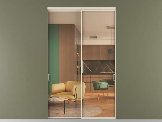 Во всех алюминиевых перегородках, независимо от типа установки, используется компланарный раздвижной механизм, благодаря которому декоративная крышка и полотно находятся в одной плоскости.
