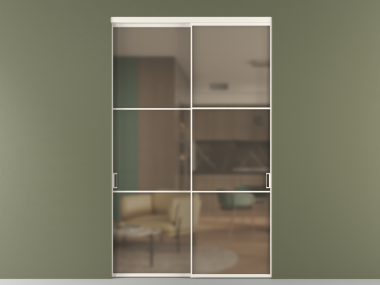 Во всех алюминиевых перегородках, независимо от типа установки, используется компланарный раздвижной механизм, благодаря которому декоративная крышка и полотно находятся в одной плоскости.