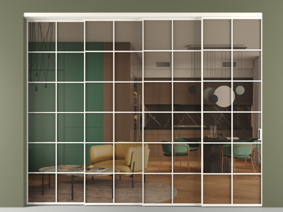 Перегородка Формато внутри проёма 4 створки с синхронным механизмом