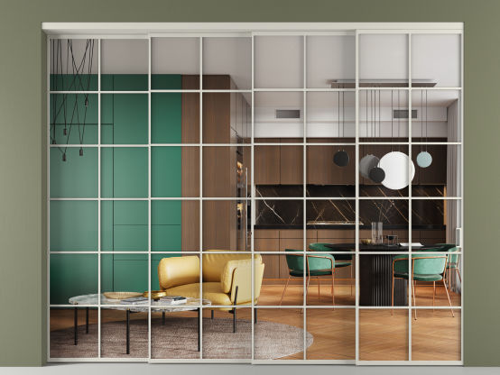Перегородка Formato внутри проёма 4 створки с синхронным механизмом