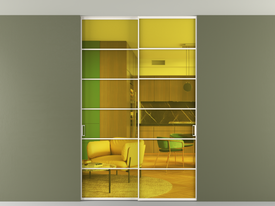 АЛПР 040.04. Алюминий пудровый белый Прозрачное жёлтое стекло, триплекс, 6мм