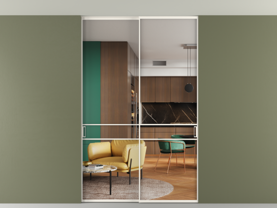 Алюминиевые перегородки имеют единый профиль с алюминиевыми дверьми и легко сочетаются в одном пространстве, не перегружая его. Также их можно комбинировать в интерьере с полотнами из нашего стандартного ассортимента. Помимо этого, система алюминиевых перегородок и дверей координируется со стеновыми панелями Волховец.