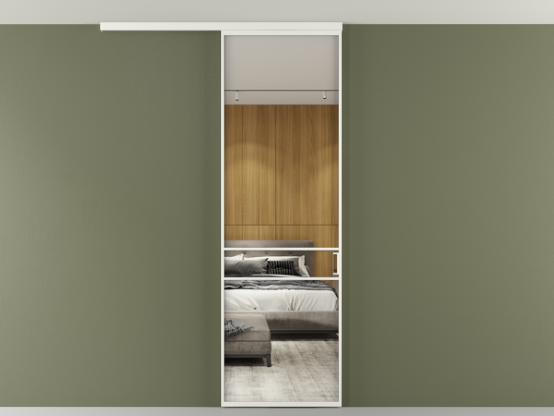 Во всех алюминиевых перегородках, независимо от типа установки, используется компланарный раздвижной механизм, благодаря которому декоративная крышка и полотно находятся в одной плоскости.