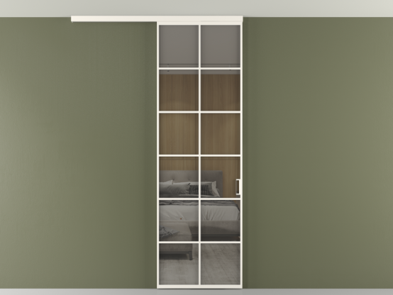 Во всех алюминиевых перегородках, независимо от типа установки, используется компланарный раздвижной механизм, благодаря которому декоративная крышка и полотно находятся в одной плоскости.