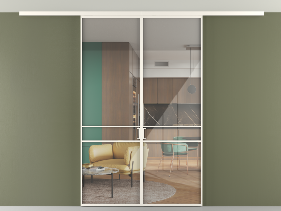 Алюминиевые перегородки имеют единый профиль с алюминиевыми дверьми и легко сочетаются в одном пространстве, не перегружая его. Также их можно комбинировать в интерьере с полотнами из нашего стандартного ассортимента. Помимо этого, система алюминиевых перегородок и дверей координируется со стеновыми панелями Волховец.