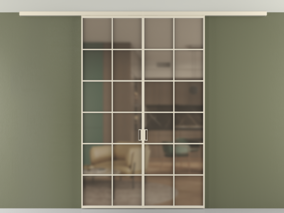 Во всех алюминиевых перегородках, независимо от типа установки, используется компланарный раздвижной механизм, благодаря которому декоративная крышка и полотно находятся в одной плоскости.