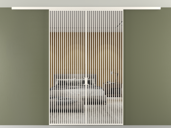Во всех алюминиевых перегородках, независимо от типа установки, используется компланарный раздвижной механизм, благодаря которому декоративная крышка и полотно находятся в одной плоскости.