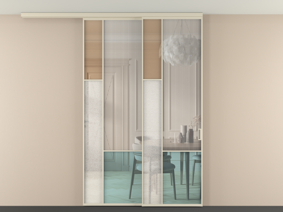 Во всех алюминиевых перегородках, независимо от типа установки, используется компланарный раздвижной механизм, благодаря которому декоративная крышка и полотно находятся в одной плоскости.