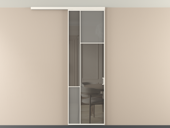 Во всех алюминиевых перегородках, независимо от типа установки, используется компланарный раздвижной механизм, благодаря которому декоративная крышка и полотно находятся в одной плоскости.