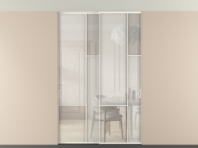 Во всех алюминиевых перегородках, независимо от типа установки, используется компланарный раздвижной механизм, благодаря которому декоративная крышка и полотно находятся в одной плоскости.