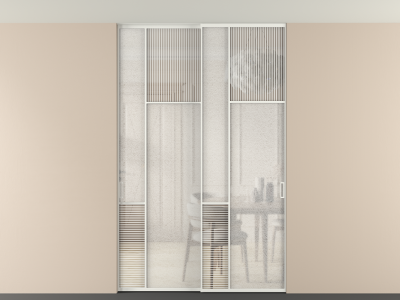 Во всех алюминиевых перегородках, независимо от типа установки, используется компланарный раздвижной механизм, благодаря которому декоративная крышка и полотно находятся в одной плоскости.