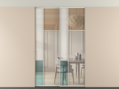 Во всех алюминиевых перегородках, независимо от типа установки, используется компланарный раздвижной механизм, благодаря которому декоративная крышка и полотно находятся в одной плоскости.
