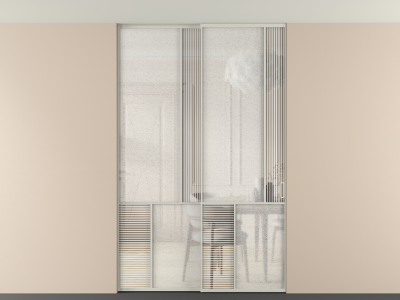 Во всех алюминиевых перегородках, независимо от типа установки, используется компланарный раздвижной механизм, благодаря которому декоративная крышка и полотно находятся в одной плоскости.