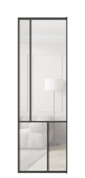 Лаконичный разделительный профиль внутренней раскладки полотна обеспечивает эстетический внешний вид конструкции и идеальную стыковку вставок из стекла.